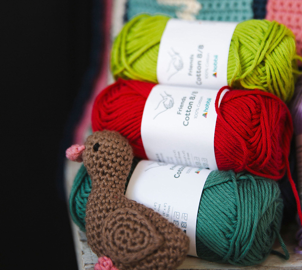 We are giving away three huge bundles of all the Hobbii Friends Cotton 8/8 yarns you need to make this stunning Christmas cushion.