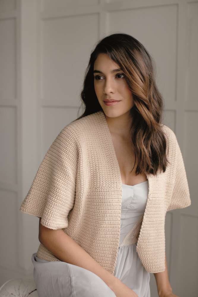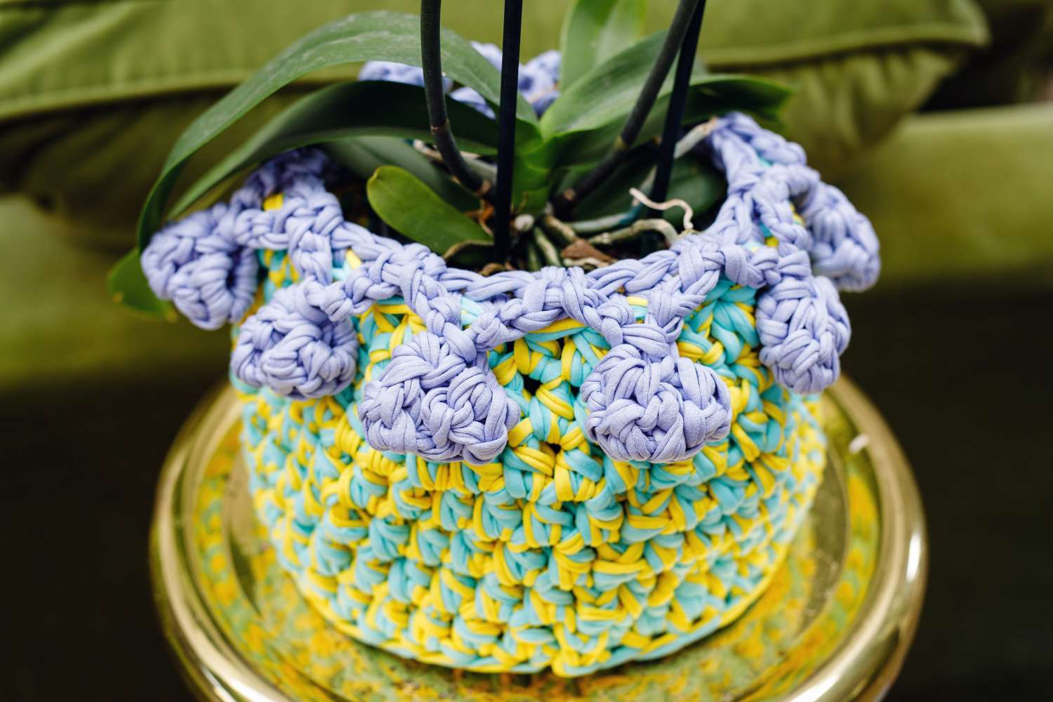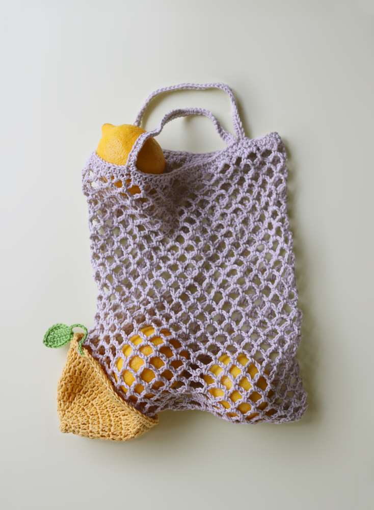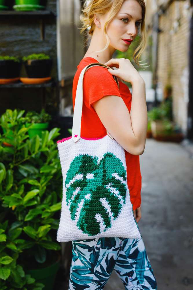 To balance out the citrusy colour palette, we have included a clutch of striking patterns inspired by tropical foliage, like the stunning Forest Shawl by Esme Crick, with its clever motif construction, cute bobble edge and elegant palette, and the bold Monstera Bag by Emma Friedlander-Collins with its modern graphic design. We think that the luminously bright shades work really well next to the deep leafy greens, so there is no excuse not to pile on the crochet this month!
