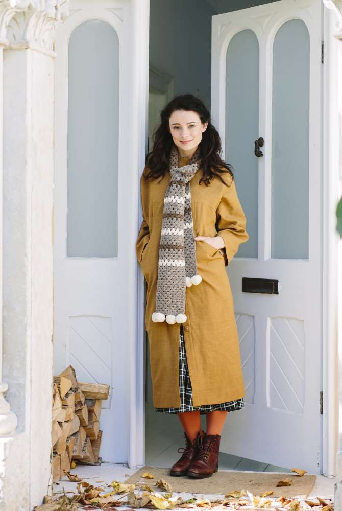 With inspiration from the TV series Outlander, the colour palette in this issue is warm browns and heathery mauves, with wrapped layers, capes and ponchos to provide warmth by the hearth or on a wintery walk. We particularly love the tweedy Coppice mitts (perfect for gathering pine cones as mantel decorations), the Cairngorm dress (a wonderfully textured must-have make) and the Twin Peaks cushions by Sarah-Jane Hicks (to snuggle in with a cup of hot chocolate!). There are also some beautiful last-minute gifts such as the Leaping Waves cowl by Rosina Northcott, which is perfect for a special few skeins of rustic yarn.