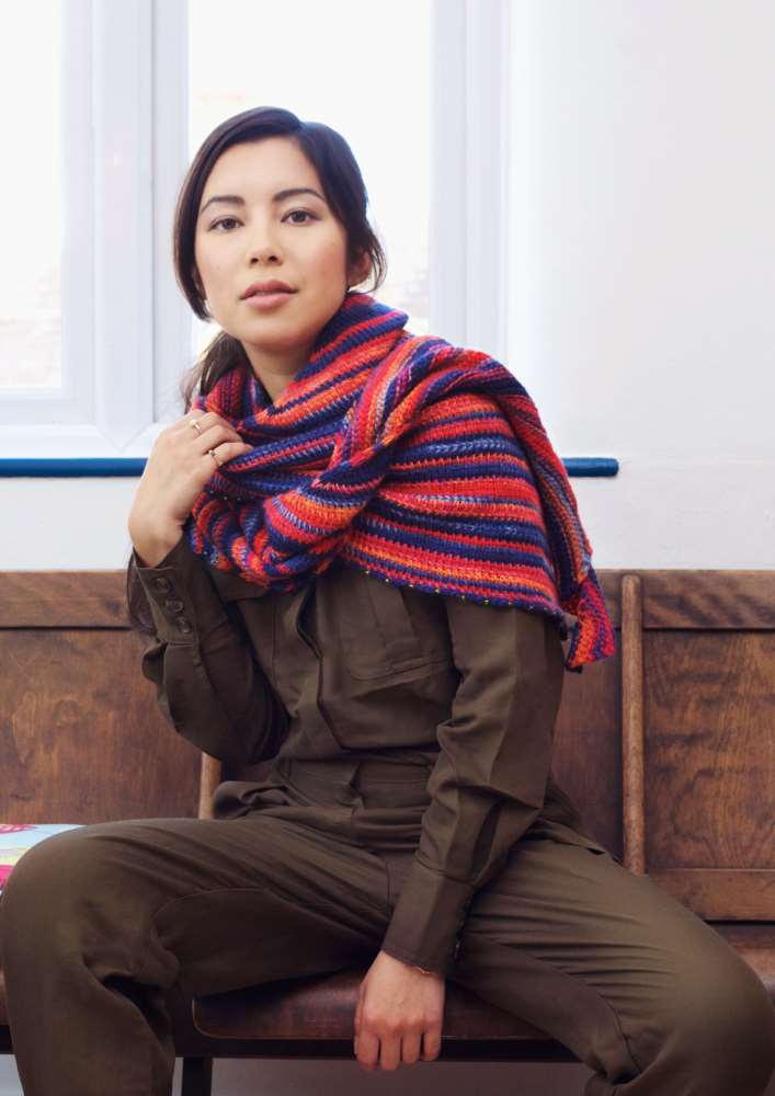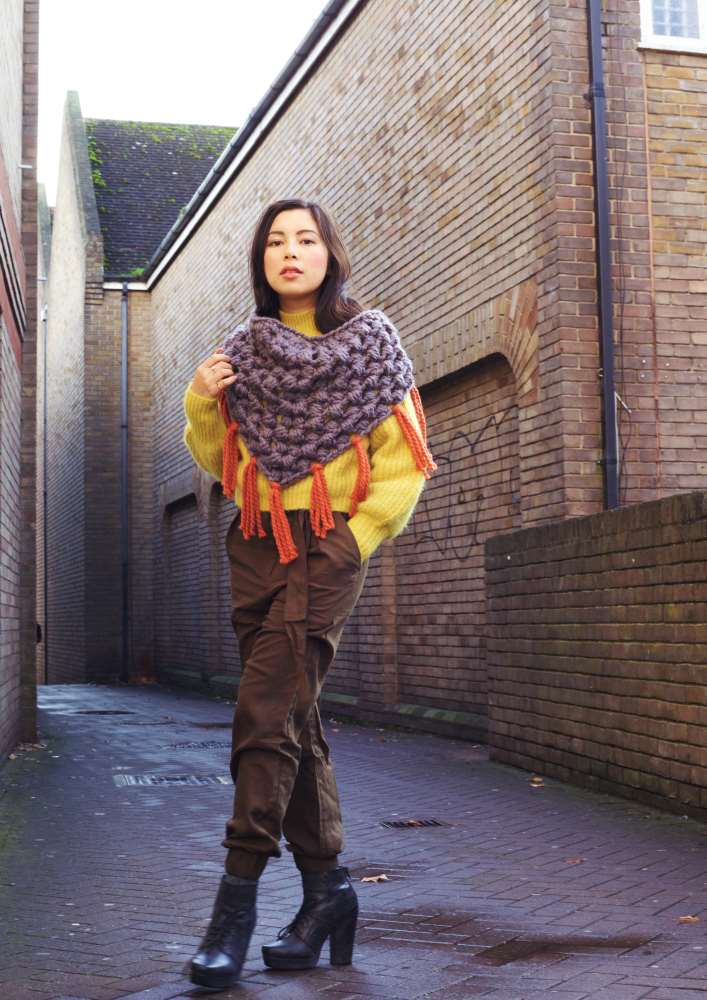 This issue of Inside Crochet includes both those things – the soft comfort of a blanket in Zoe Curtis's modern and cool Bauhaus design, and the speed and boost of colour in Alessandra Poggiagliolmi's corner-to-corner cowl and mitts. We've also found inspiration in the unlikeliest of places the city in winter. As well as the twinkle of fairy lights and the bursts of bright fireworks, there's the neon signs of well-lit restaurants and the reflection of car headlights in puddles. We love how Padma Ramesh's Tunisian shawl captures the mellow colours of a winter twilight, and how Grace Kok's Neon Lights sweater uses pops of neon pink to lift the gloom away.