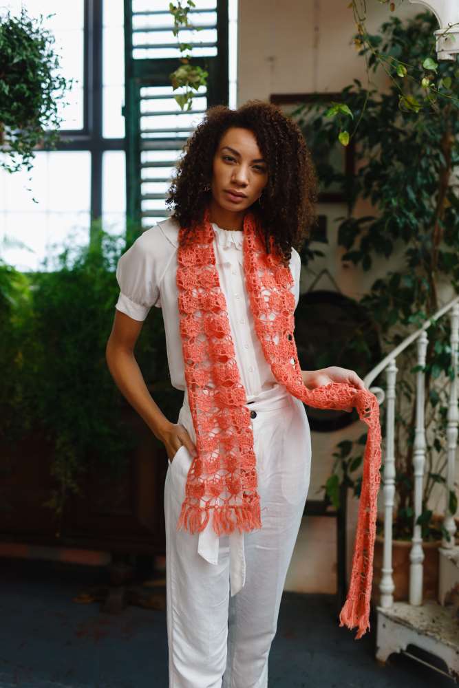 We love the first signs of spring, with white buds, green shoots and new growth, earthy colours and crisp aromas, and we hope you'll love this issue that shows the beauty of botany! We particularly admire Joanne Scrace's take on the theme, with a stunning linen-blend yarn showing off the crisp stitches in an oh-so-wearable Vernal sweater, and Theodora Burrow's lace jacket, crocheted in bamboo and cotton plant fibres to keep you cool in summer and ideal for layering on cooler days. For an artistic take on the botanical trend, Claire Montgomerie's stunning abstract wrap uses colour and shape to express the theme perfectly and would make Matisse proud!