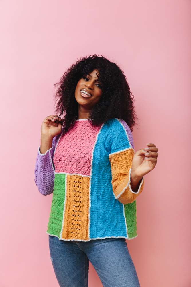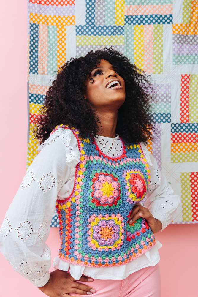 Hopefully our glorious cover image of the very lovely Bella Achiaou wearing Katie Jones's Patchwork Pop Vest has already made you smile, because this month we've had such a fun time creating a contemporary collection of crochet patterns inspired by patchwork.