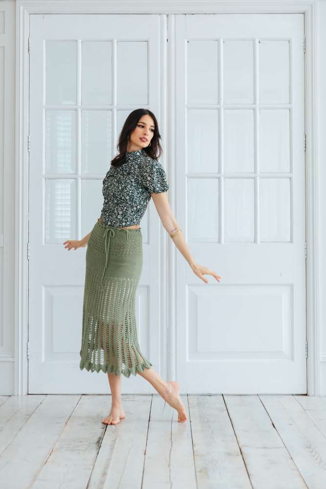 Linda Modderman's Elegant Maxi Skirt is absolutely on-trend, with a swooshy, flared edging. Yessabett Bueno has designed the stunning fitted Sonata Top with pretty cap sleeves and delicate patterns, and Hannah Cross has used a gorgeous gradient yarn to beautiful effect with the very wearable Cherry Blossom Cardigan.