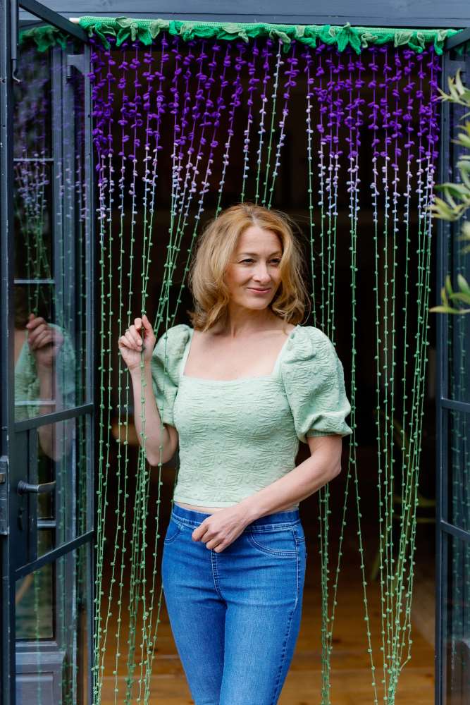 When it comes to layering pieces for summer evenings, it is hard to beat a statement shawl. Helda Panagary's exquisite Verge Shawl shows off the stunning hand-dyed Merino yarn to perfect effect, finished with a pretty ruffled border. And if the draping blooms of wisteria send you a bit giddy, like us, then why not create Kwannie Cheng's delightful door curtain, to keep the flowers around all year?