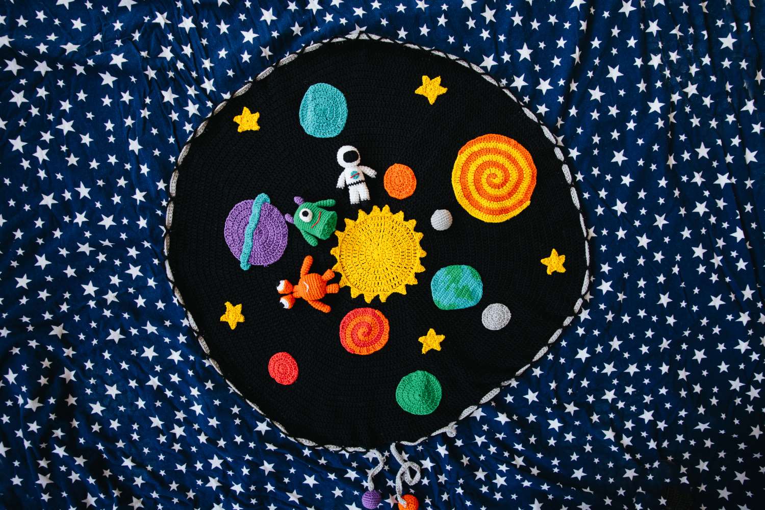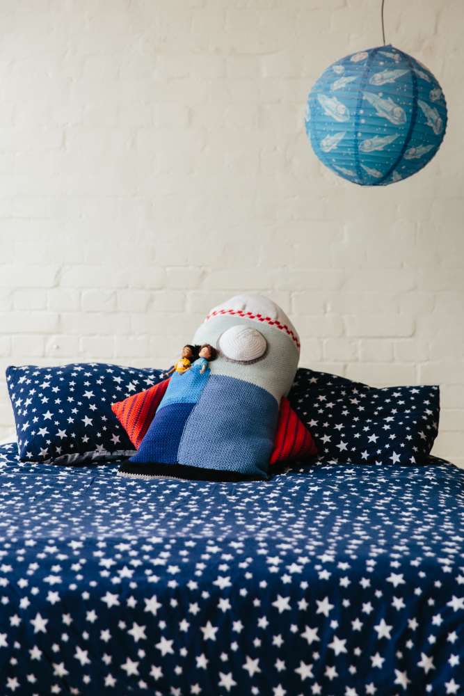 And if gazing at the clouds makes you contemplate what is out there, then pick up Kwannie Cheng's Rocket Pillow and say hello to Neil Yarnstrong and his cute alien friends in Gurinder Hatchard's Out of this World Playmat, for adventurers of all ages!