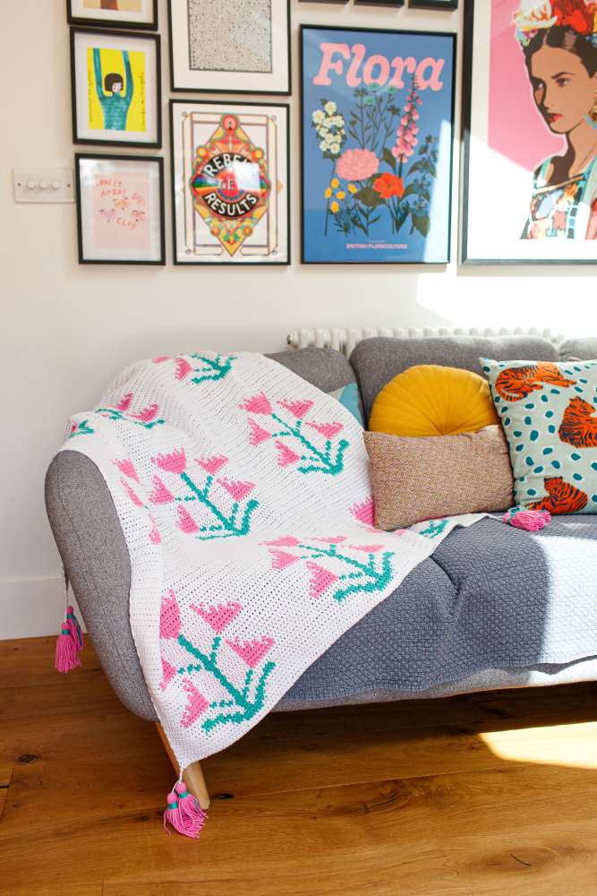 Crochet colourwork has endless possibilities, so hone your tapestry skills with the magical Floral Blanket, the riot of colour in the Geometric Tapestry Scarf and the gorgeous Gingham Jacket.