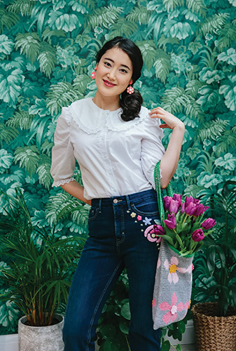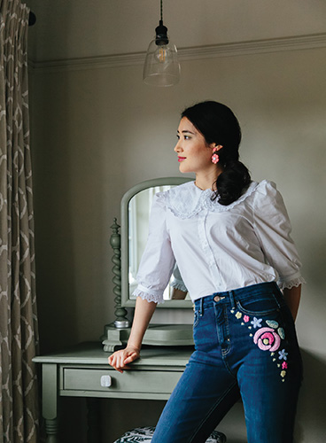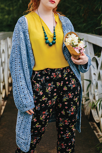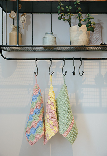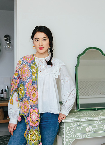 In the meantime, we've been thoroughly cheered by the fresh look of this month's projects. We have pretty flowers everywhere, from the fun hexagon motifs of Cassie Ward's tank top and Jo Smith's elegant floral motif shawl to Emma Friedlander-Collins' clever patches designed for upcycling your favourite jeans. But March can be fickle weather-wise, so we can't pack away our woollies just yet. Claire Montgomerie's cherry waistcoats are the perfect way to stay stylishly snug this month, while Helda Panagary's unisex Andi Cowls are the ideal cosy make.