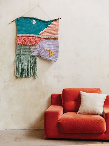 The issue has plenty of smaller interiors projects too, with on-trend nature-inspired cushions by Tracey Todhunter, the beautiful Cloudbusting Wallhanging by Kath Webber and the delightfully detailed Dragonfl y by Vanessa Mooncie.