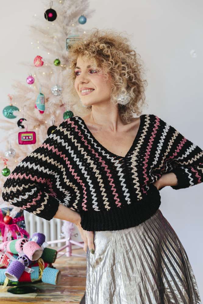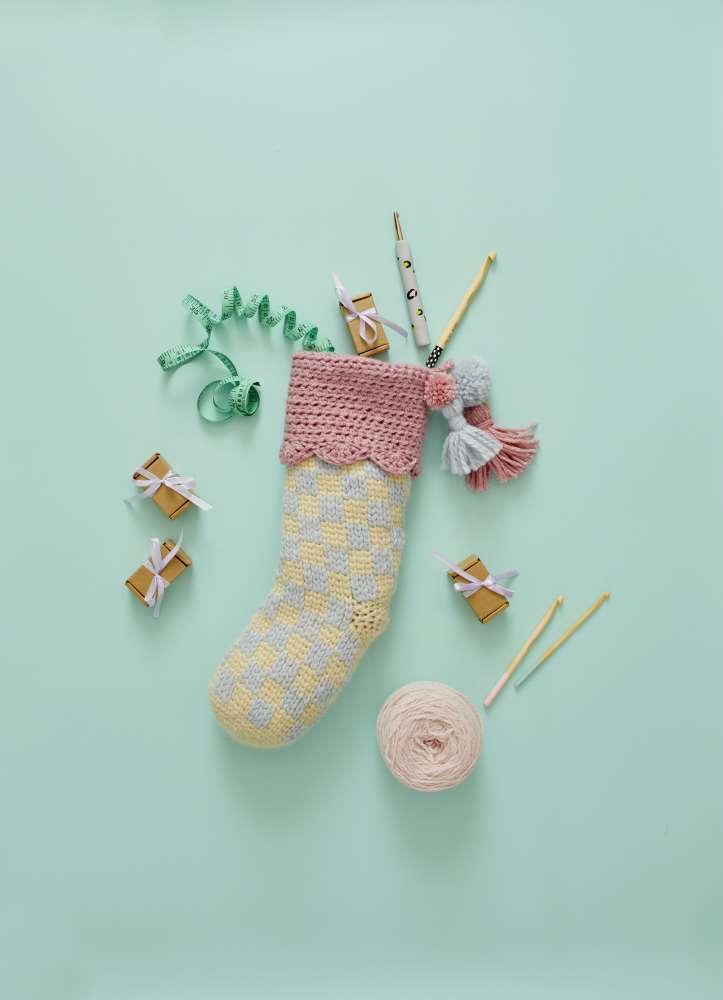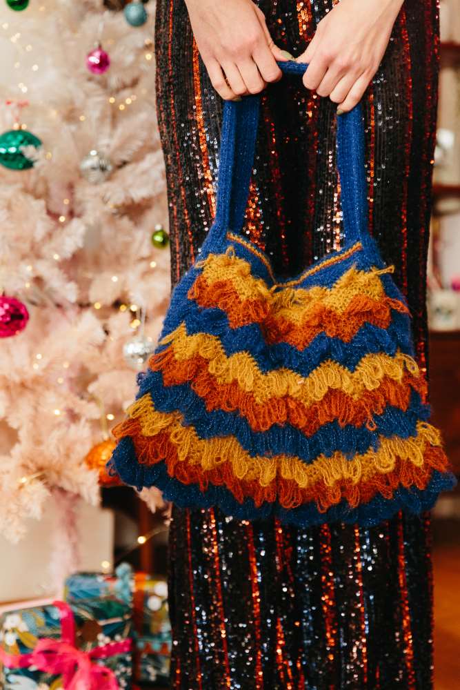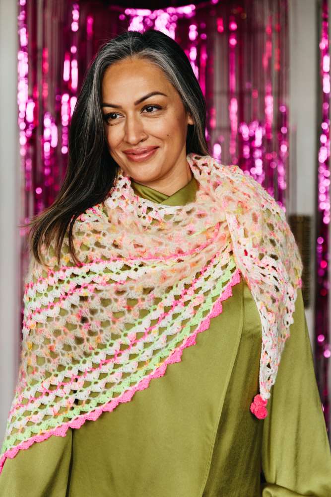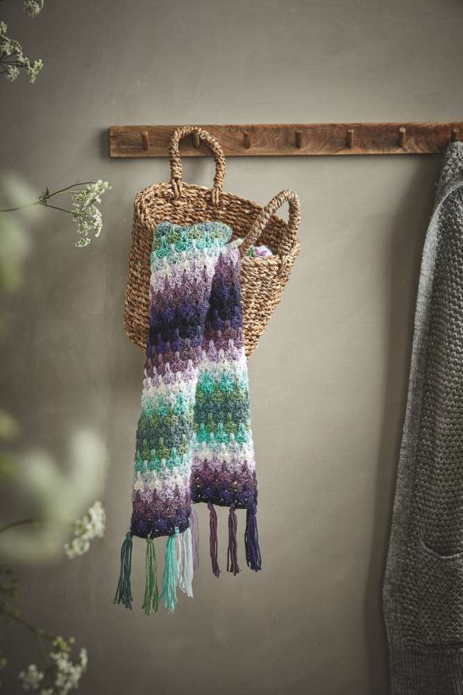 There are lots of fabulous wearables to create too. Lauren Willis’s batwing Dancing in December jumper and Lucy George’s Shimmer Fringe Jacket are both size inclusive and made in affordable, easy to source yarns. And you don’t get more colourful than Claire Montgomerie’s fabulous Neon Firs Hat and Mismatch Mittens.