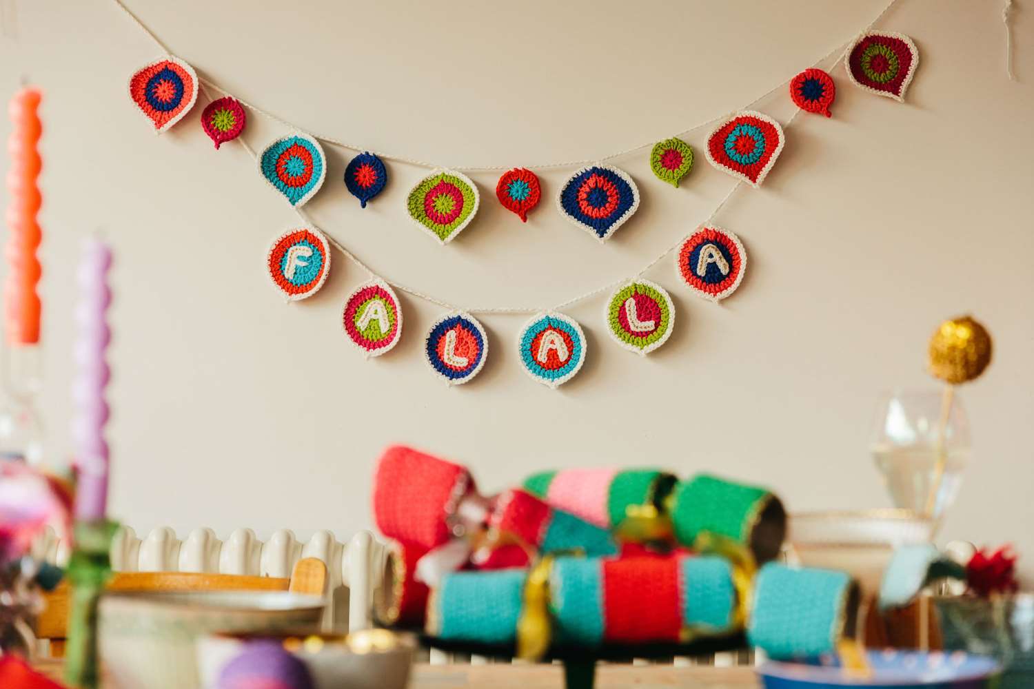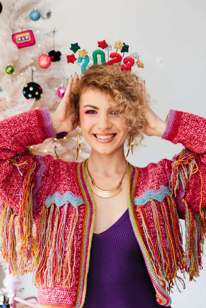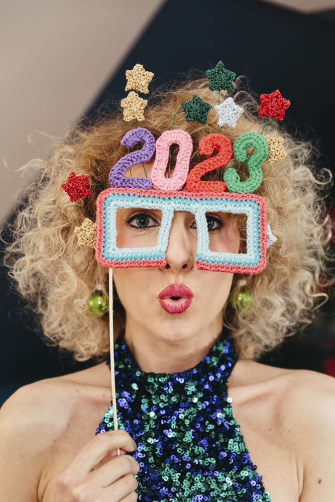 And Millie Masterston has designed the ultimate cocktail stirrers with fabulous glitter ball tops. Add in reusable crackers, sequinned hair accessories, retro bunting and the ultimate New Year’s Eve crown and you’ve enough quick-hook decorations to satisfy the biggest party crowd!
