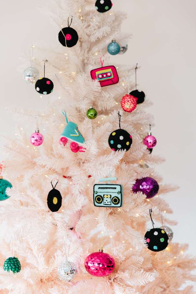 Take it to the max with Kwannie Cheng’s fabulous tree decorations that celebrate the nostalgia of the roller disco.