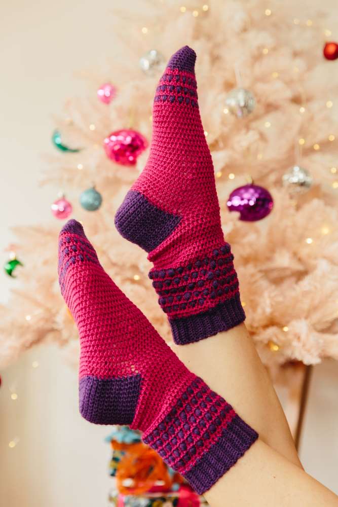 We’re all feeling the need for some bright colour and a touch of glitter, and many of our patterns this month are easily adaptable to use up your stash yarns and save a little money.