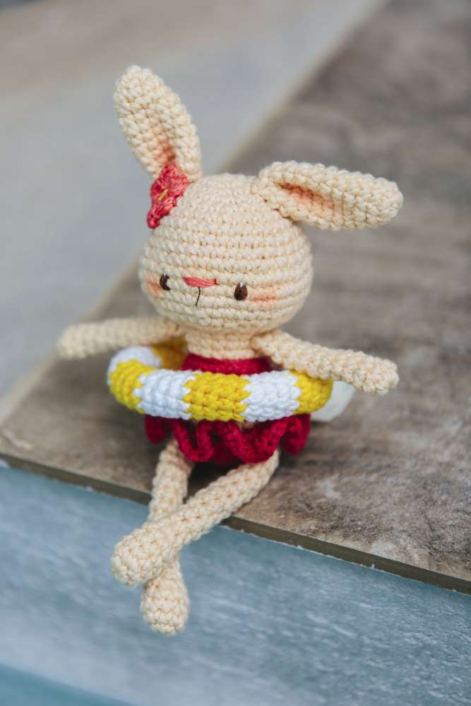 We have everything from quick and simple garments for lounging around the pool, to fabulous bold and graphic homewares like Kath Webber's Splash! Wallhanging, as well as cute amigurumi in Amy Ting’s gorgeous wee lifeguard rabbit.