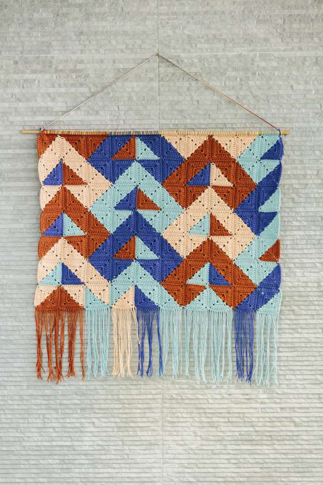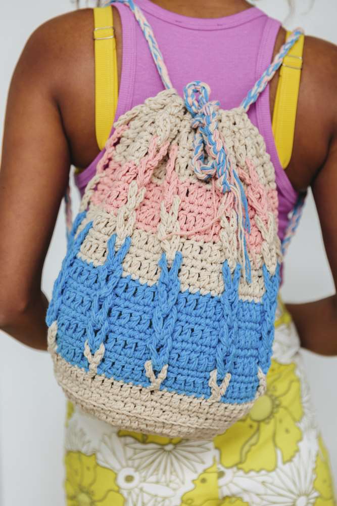 Claire Montgomerie’s masterclass is a brilliant one, showing how to crochet the corner-to-corner stitch, also known as diagonal box stitch. This technique is ideal for those adventurous beginners looking to add to their own stitch bible and invites really innovative use of colour, as shown in Claire’s top design.