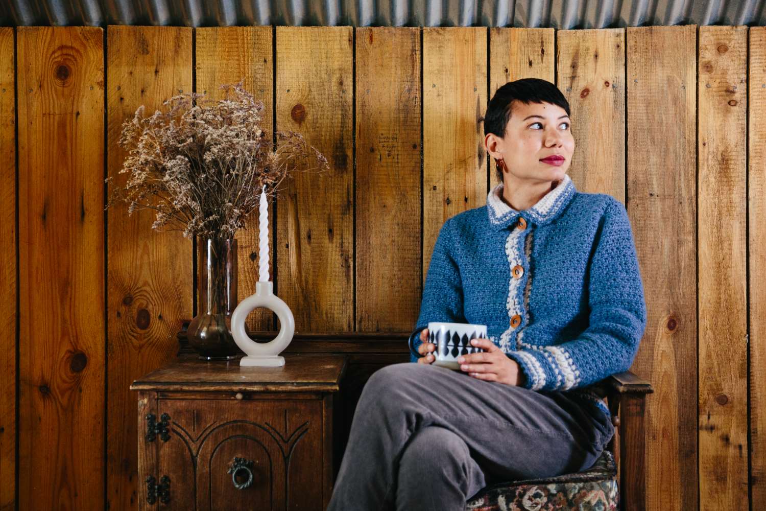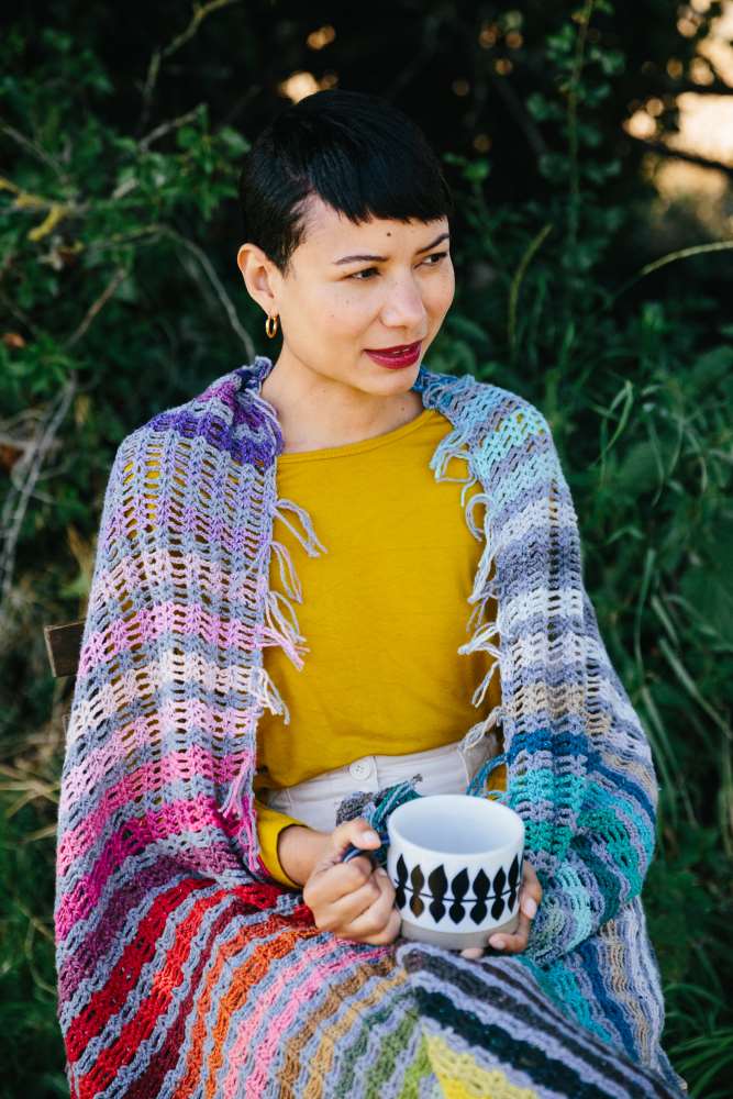 Which is also what she intends to do with the Zissou Hat she made with her husband in mind – inspired, of course, by Bill Murray’s eponymous hero of The Life Aquatic With Steve Zissou. However, we’ve provided simple instructions for making the hat in any size, so all the family can enjoy cosy ears! We have some wonderful rustic yarns, perfect for warding against windswept days. Rosina Northcott’s beautiful Drapey Cardigan is a great project to display a woolly yarn, as well as Kath’s Bothy Shawl if you have some odd skeins of DK yarn to show off .