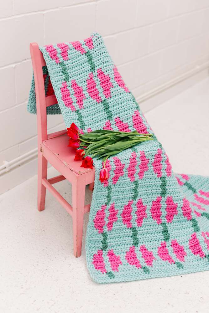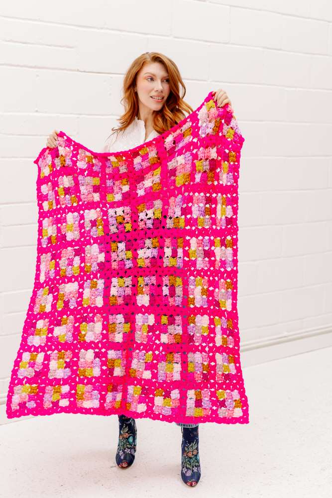 There’s no end to floral designs in crochet, so we love how Cassie Ward has used the colourful African flower motif to make a cardigan for everyday wear, while Helda Panagary has opted for puff motifs to make a modern check blanket with oodles of texture. Plus Helen Anderson has embraced modern florals with tapestry motif designs – so clever, cool and beautiful!