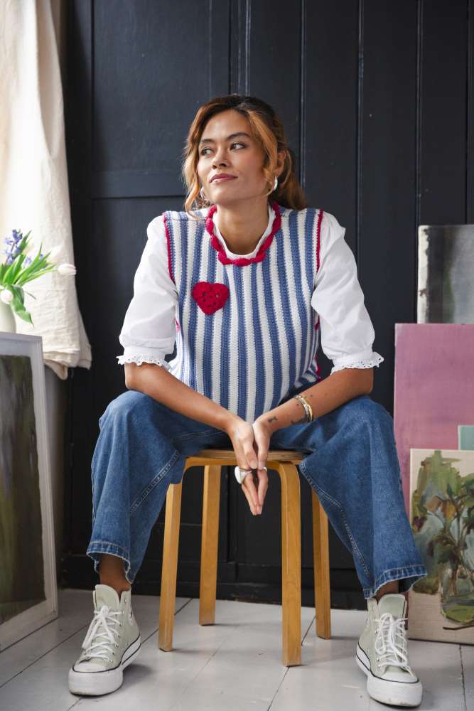 For your weekend wardrobe, the star of the show has to be Sam Sabido’s Spring Sunshine Jacket – a design just blooming with colour! We also really like garments that work dressed up or down, and the Frills for Days Camisole by Theodora Burrow ticks both boxes.