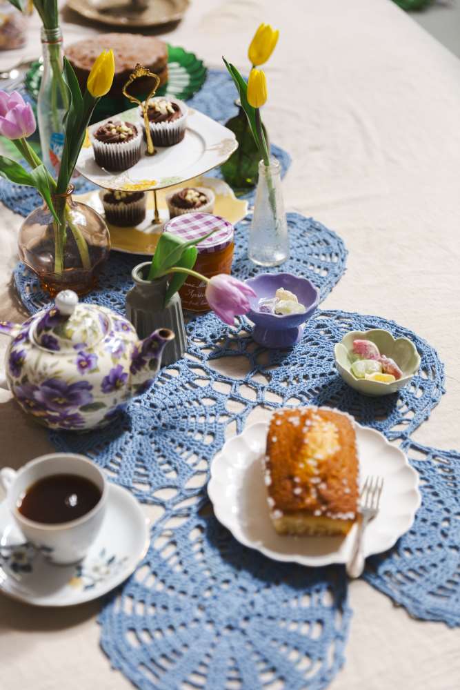 We’ll be making up Theodora Burrow’s Battenburg Tee in soft mohair yarn, and we can’t wait to snuggle under our Cream Tea Blanket, created in a vintage-style stitch that would be a great stashbuster. But for now, it’s time to lay out the (handmade) doilies for the (homemade) jam and scones and enjoy the sunshine!