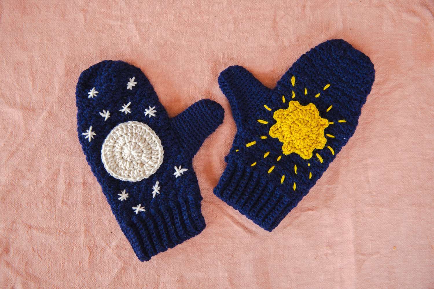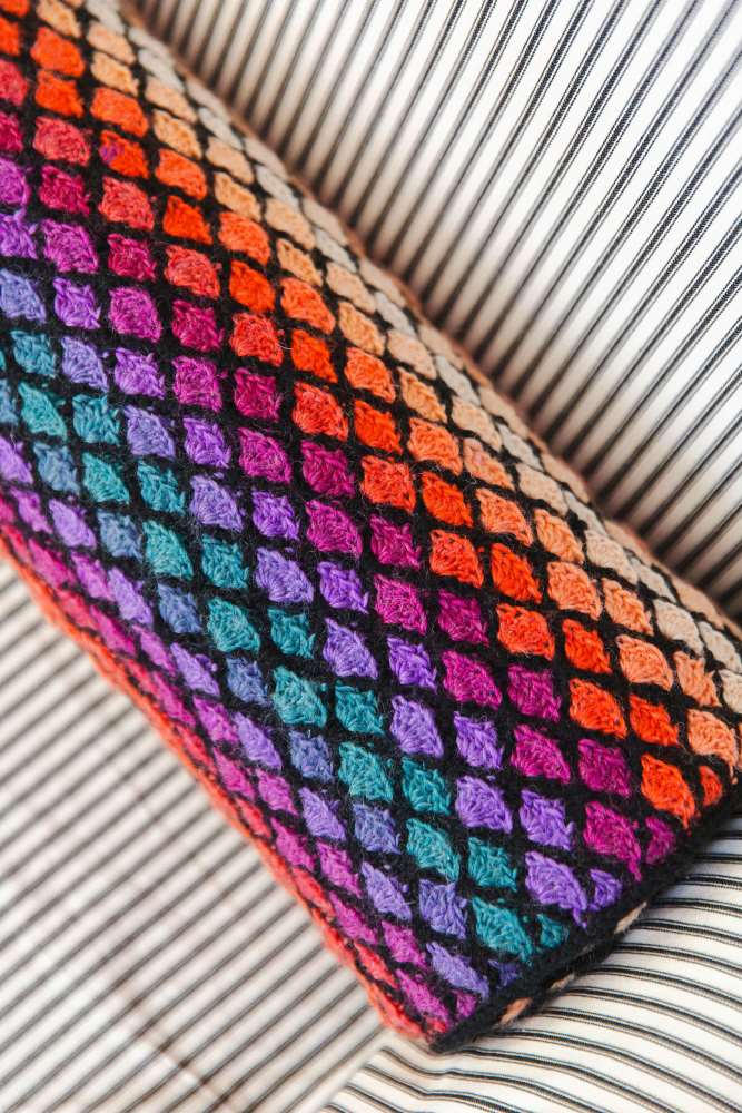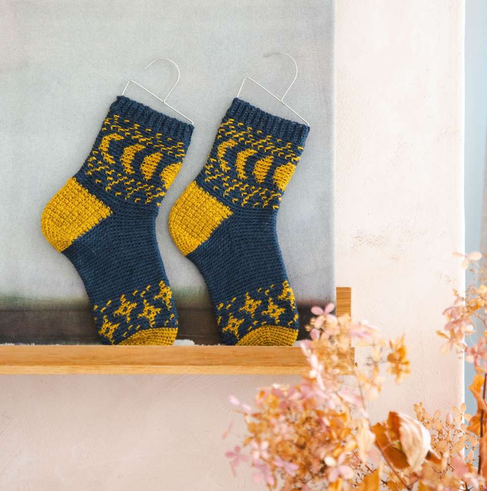 It’s hard to choose what to make first, but the season calls for cosiness, so we’ll be hooking up some of Anna Nikipirowicz’s Over the Moon Socks. We just love the shades and simple colourwork depicting the moon’s phases. Helen Anderson’s graphic Lunar Blanket uses the motif in a completely different way, adding metallic embroidery for a sparkling effect.