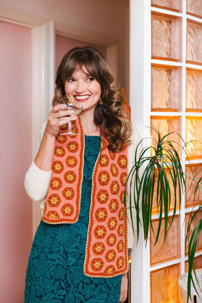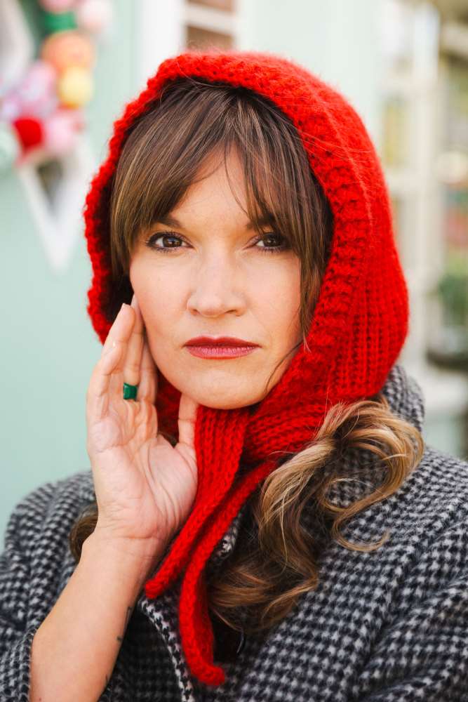 For a lovely ski bunny look, go for Jess Bennett’s fun Cable Bobble Slipover – the bobbles have that nostalgic look of multicoloured tree lights. And to top it all off – literally! – is the gorgeous Audrey Hood, reminiscent of Cate Blanchett in the brilliant movie Carol.