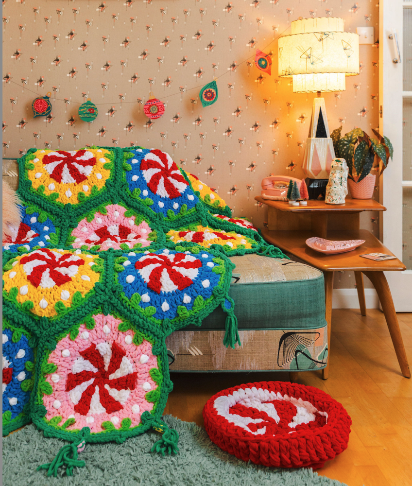 Of course, Christmas is a time for giving, but we haven’t forgotten the decorative touches, such as Helen Anderson’s fabulous Fairy Lights Ribbon, Millie Masterton’s Bauble Wreath and Nicky Ward’s joyful Peppermint Blanket.