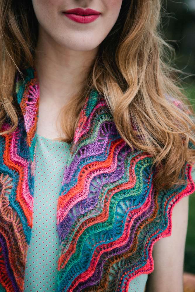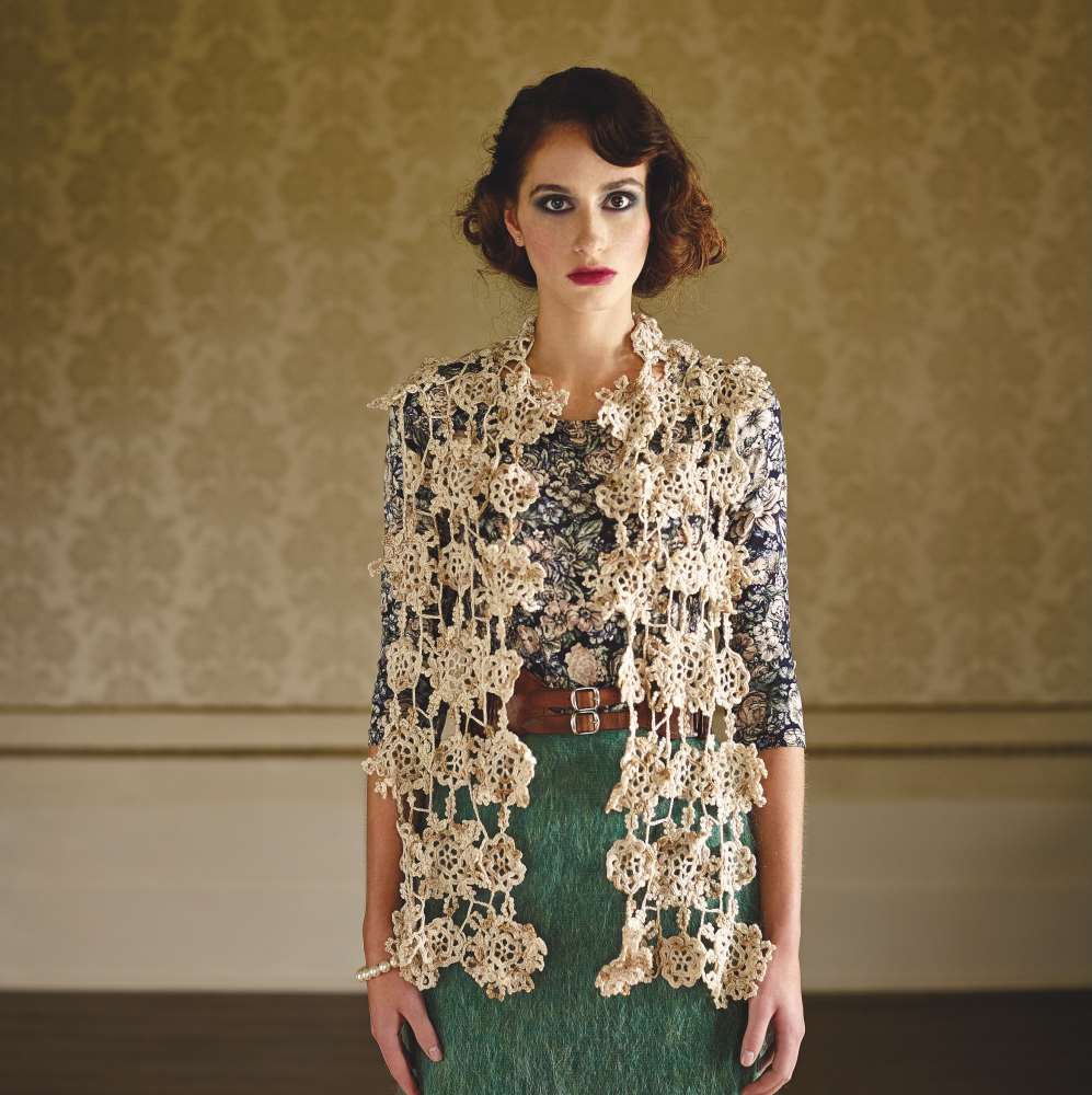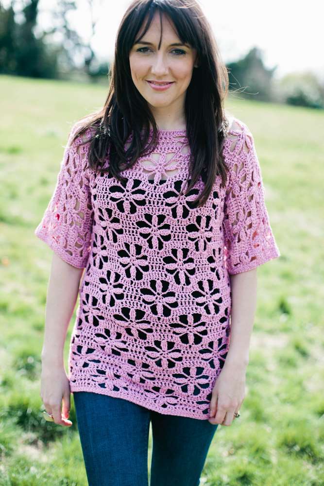 Last issue we showcased filet crochet in our techniques section and the filet love just keeps on growing this month, as we progress onto garments. We can never resist a shell top come summertime and love how the changes in the type of squares from mainly open mesh to filled in blocks creates a subtle and very pretty peplum at the bottom of this particular garment.