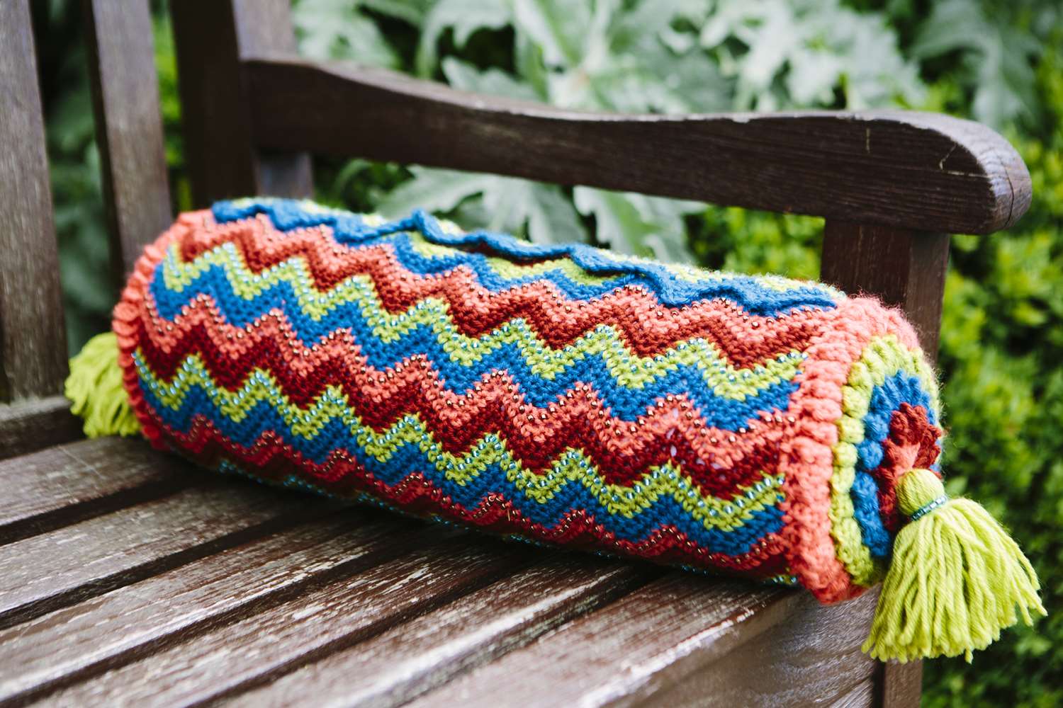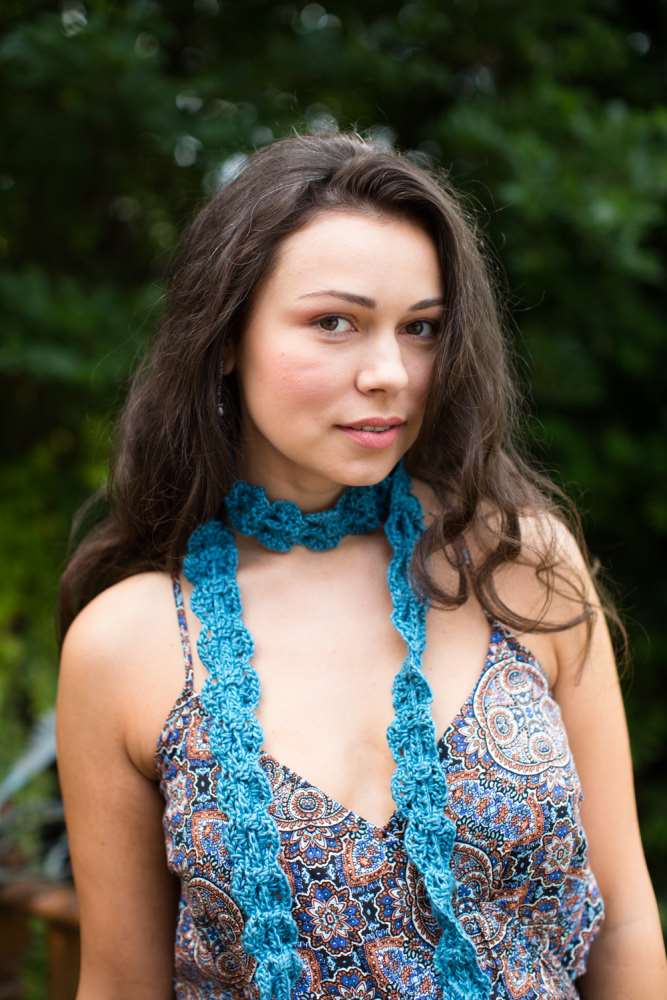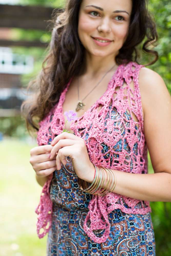 The Road To Jaipur waistcoat on page 48 uses a stunning stitch combination to create an incredibly pretty layering piece that will look just as good over a strappy dress as it would over a long-sleeved tee on cooler days. While the Lariat on page 74 can be worn in a myriad of different ways: as a belt or decorative necklace, or wrapped round the neck to create a cosy scarf.