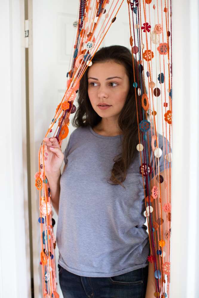 We also have some mixed media projects this month made with materials you can find cheaply and easily to create striking results. The upcycled bag by Luz Mendoza is a fabulous example of how modern recycled projects can be. The crochet fabric looks great next to dark denim and creates a roomy, strong and practical shopper. The curtain on page 82 is retro-inspired, but Jo Bodley's quirky use of buttons and curtain rings next to bobbles and chains creates an interesting adornment, whether to create a decorative fringe on an interior door or a practical screen for the back door on a hot day.