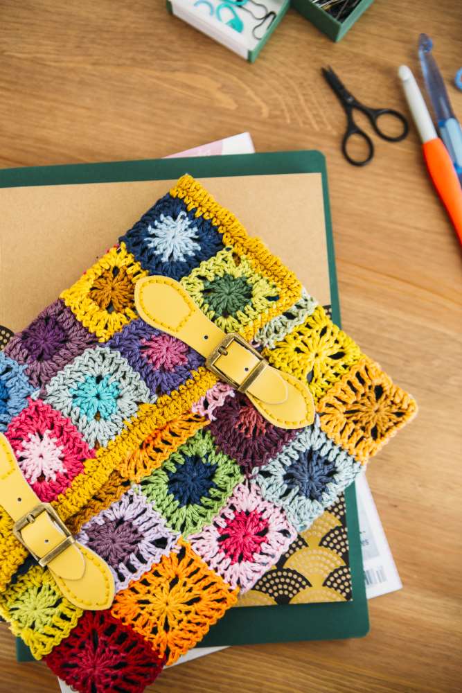 Granny squares were incredibly popular in the middle of the last century, but these days have been given a modern update with all sorts of beautiful designs available in refined colour palettes. We love the use of modern monochrome in the hooded scarf, while Helda Panagary's bold and bright gadget cosy has a definite nod to the clashing brights of midcentury crochet, but also uses up-to-the-minute buckle fastenings as an apt addition to a thoroughly 21st century tech accessory.