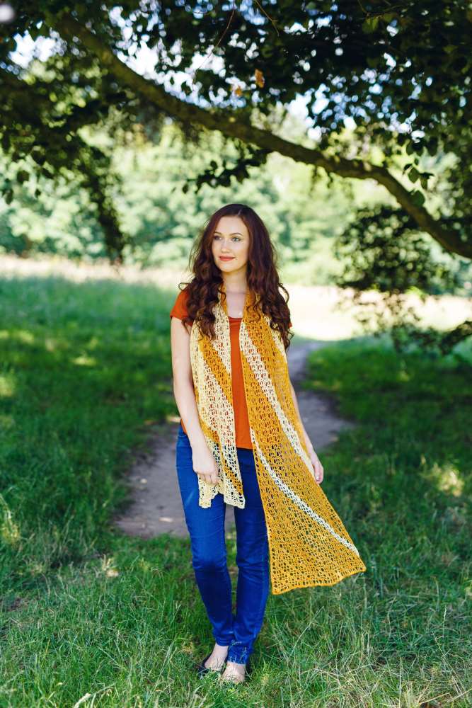 We've fallen in love with Helen Free's gorgeous Sunrise Stole, made in beautiful late summer colours, and a perfect cover-up to keep away the chill or protect yourself from the sun.