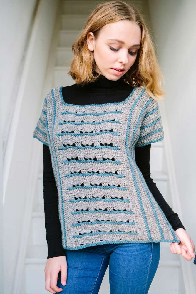 And this issue we've got a great selection of patterns to keep you cosy, from Ruth Maddock's pure wool cardigan to Helda Panagary's colourful Van Gogh Scarf, in a gorgeous vintage-look yarn. Annelies Baes's Tweed Top will go perfectly over a long-sleeved tee – and there's a matching set of mitts too, to keep your hands warm.