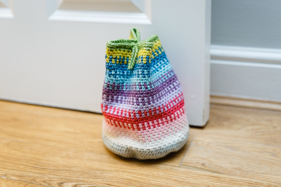 We're also really pleased to introduce our new columnist, Dedri Uys of Look At What I Made. Dedri is known for her fabulous homeware and toy designs, and will be bringing a homely spot of colour to Inside Crochet, starting with a pretty and practical doorstop that's also fab for storing all those bits and pieces that always appear around the house.