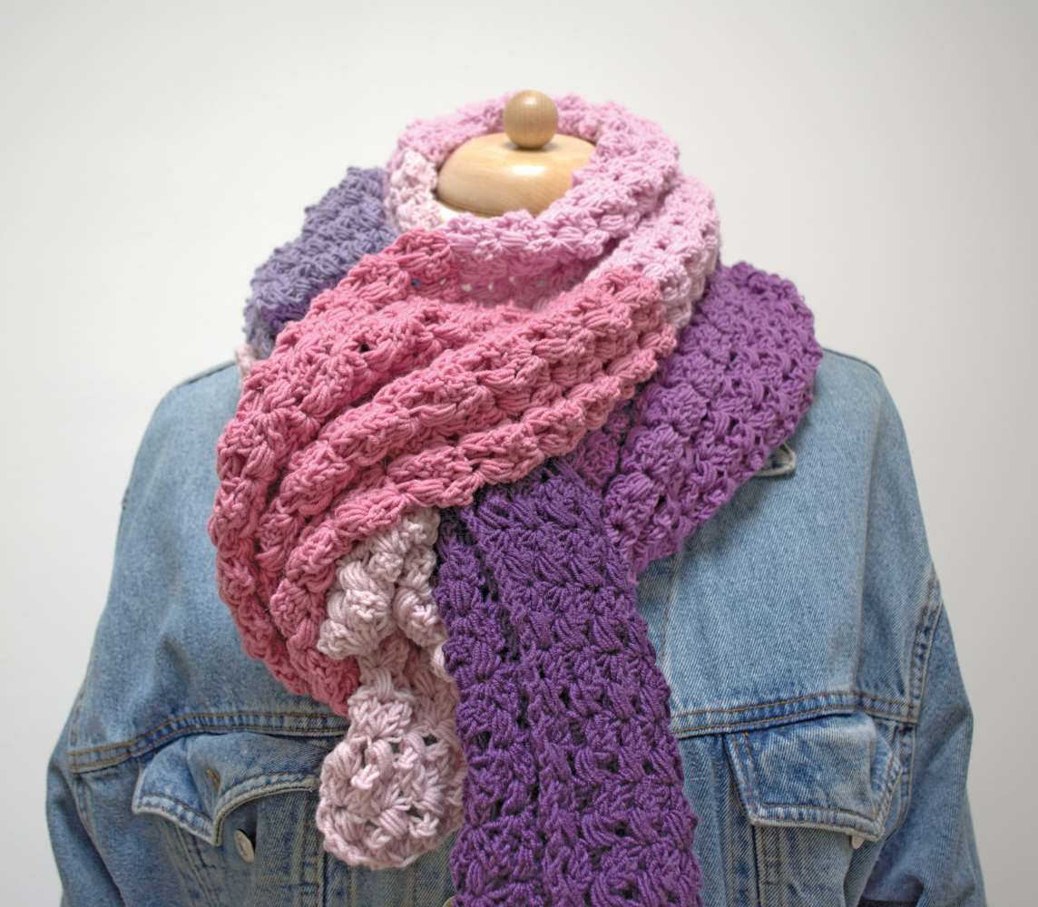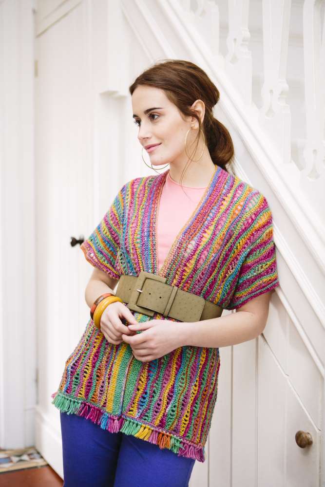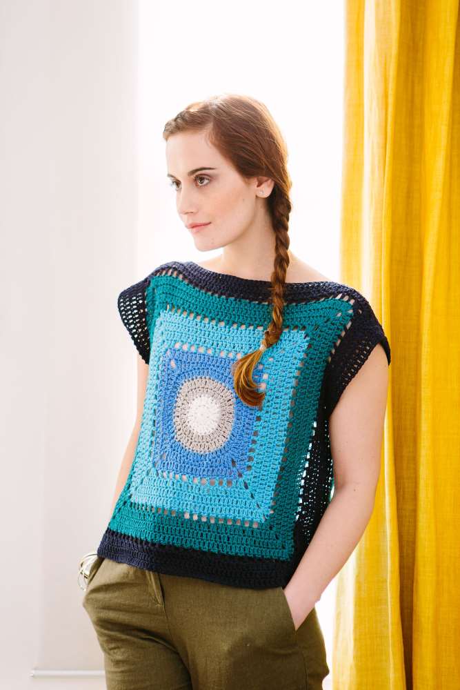 We're definitely at our most comfortable in jeans and a t-shirt no matter what the time of year, so Sarah Shrimpton's slouchy granny tee in a cotton/linen blend is currently top of my to-hook list. While Rhian Drinkwater's laceweight Lucy Scarf is just the thing for a pop of colour with a neutral outfit, and wonderfully light and airy for warmer weather.