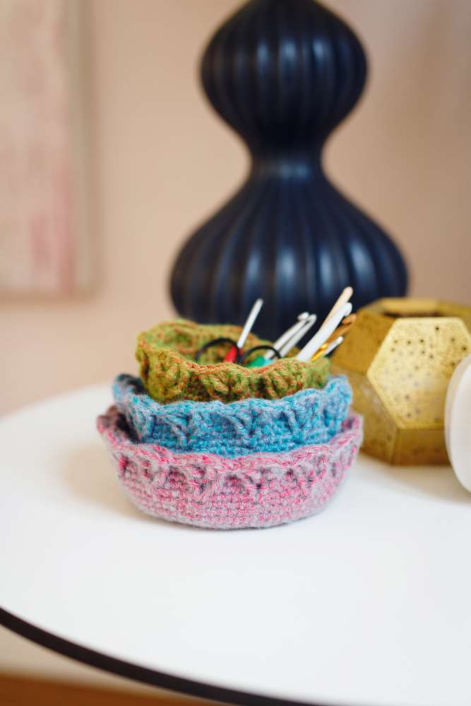 We should probably be prioritising presents, but have to admit that top of our list at the moment is Cassie Ward's stunning Granny Jumper – that perfect shade of Christmas green has us captivated! We've also been eyeing up Sarah Reed's pudding-themed tea set, which is just the thing for an instant festive feel on a coffee table! We've also got a great selection of patterns that will make for perfect presents, from Elisabeth Davis de Herraiz's stunning shawl to Dedri Uys's colourful basket set. And if you're short on time, then Helda Panagary's pretty bracelets are a super-quick make that can be hooked in any recipient's favourite colours.