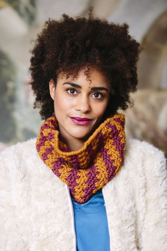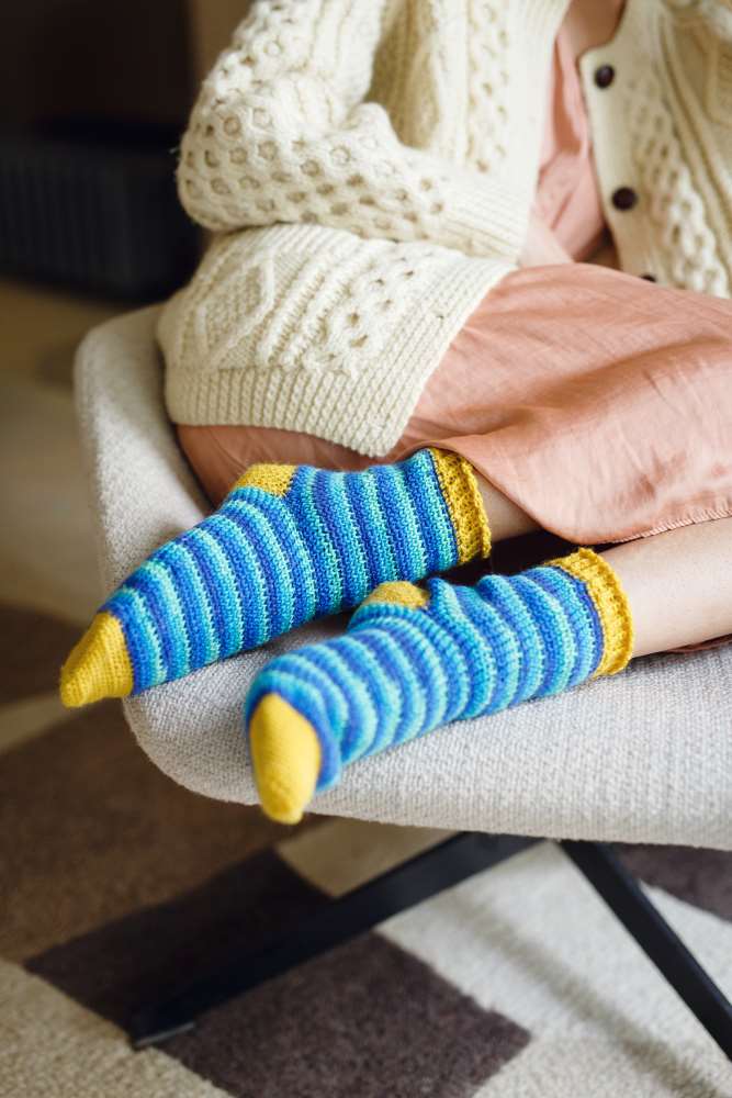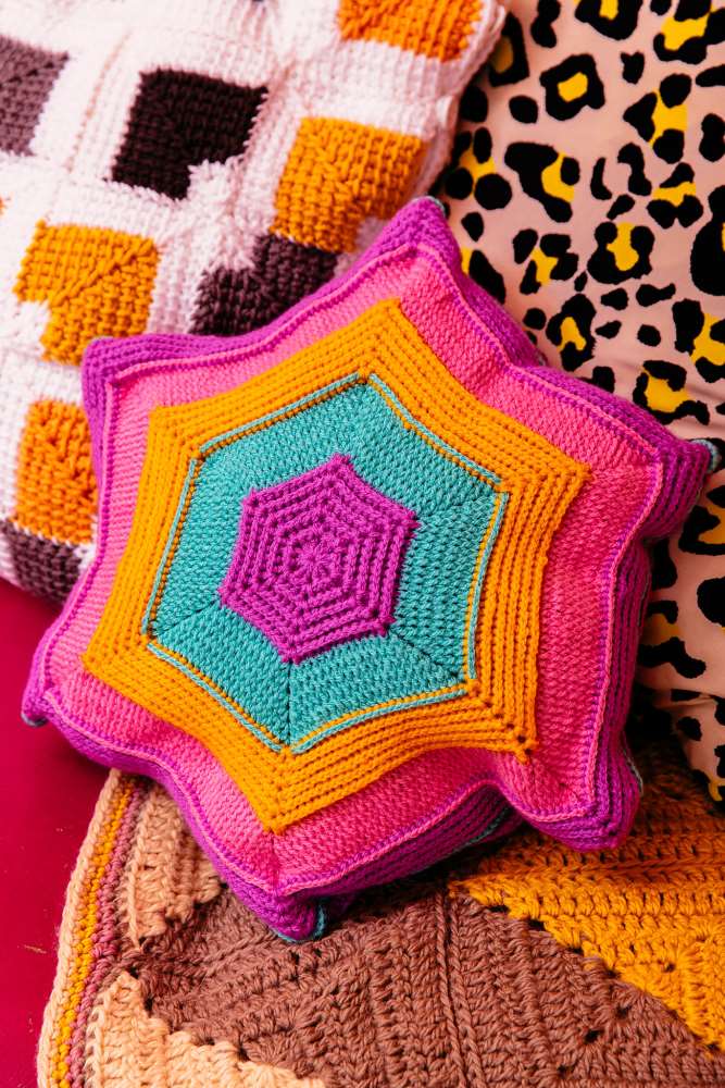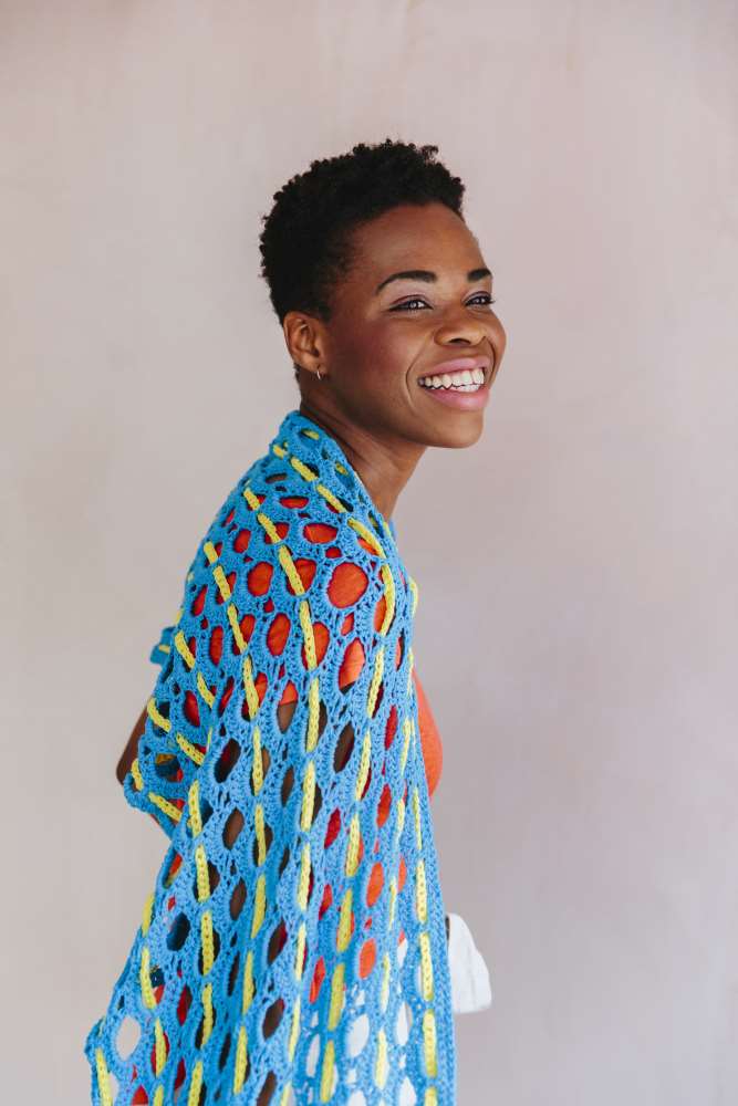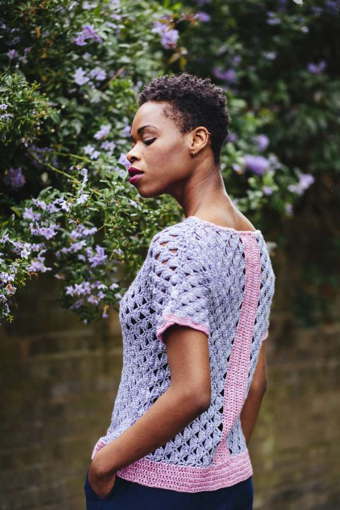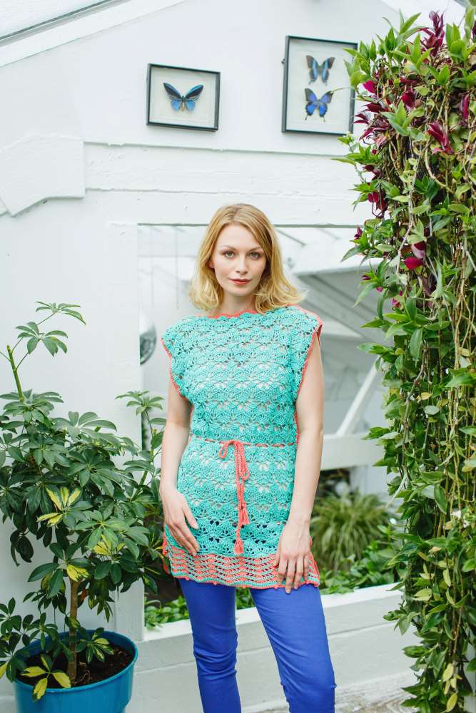 Katia Spring Rainbow would be a perfect alternative yarn to use here, or any DK-weight gradient yarn will achieve a similar colour effect. Any standard DK-weight cotton/acrylic blend yarn would be suitable to make the shawl.