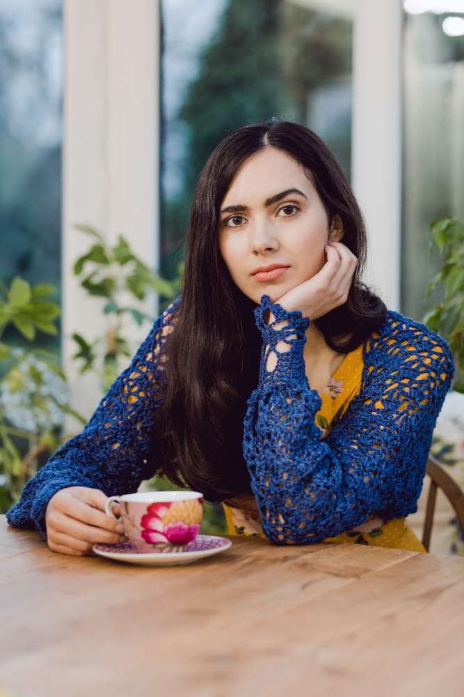 A light and lacy shawl perfect for summer made with a rich, deep-toned yarn.